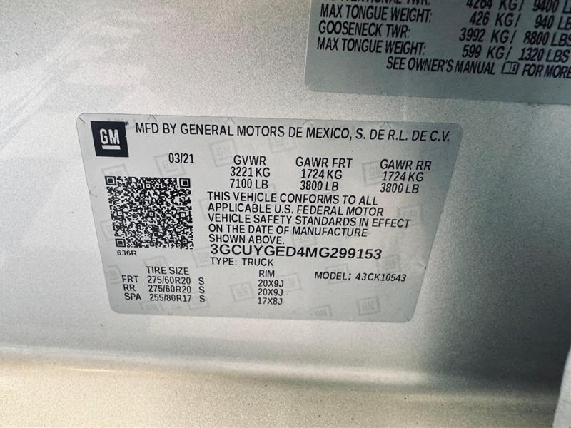 VIN #: 3GCUYGED4MG299153