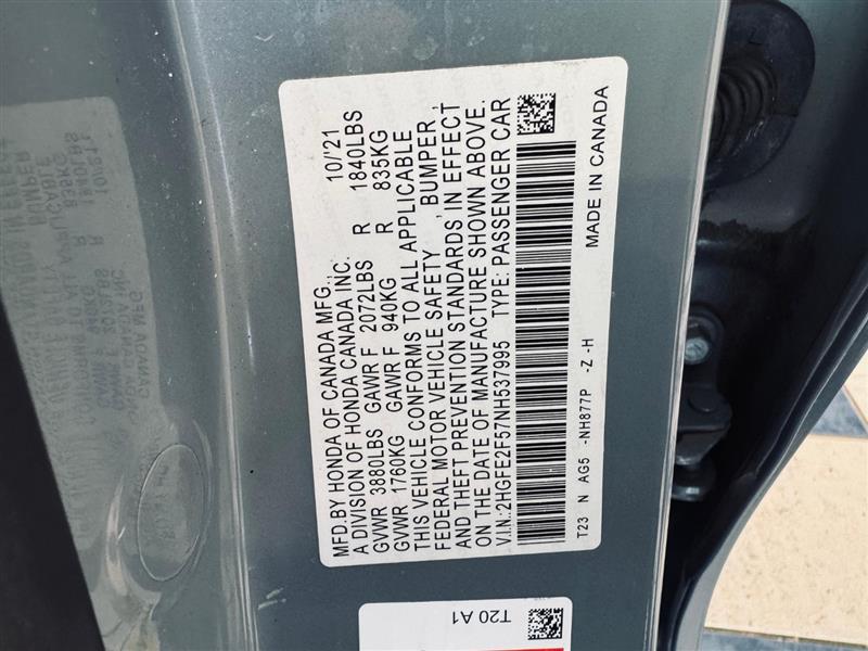 VIN #: 2HGFE2F57NH537995